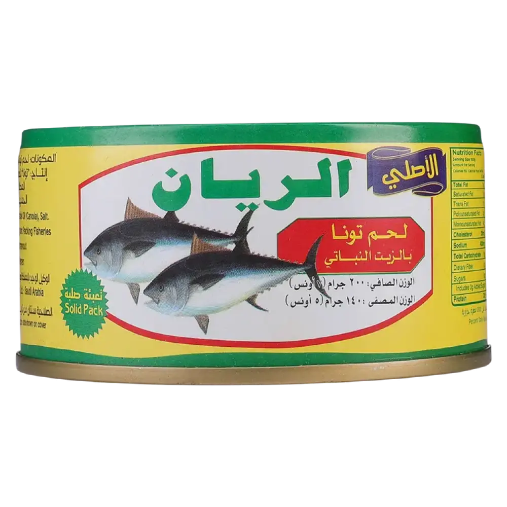 تونا لحم خفيف في زيت نباتي من الريان – عبوة بحجم 200 جرام📌 المواصفات:العلامة التجارية: الريان (Al Rayan)النوع: تونا لحم خفيف – عبوة صلبةالحجم: 200 جرا...
