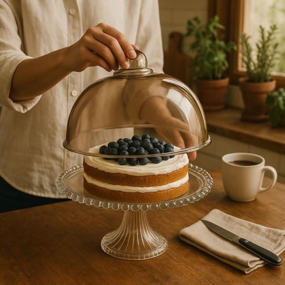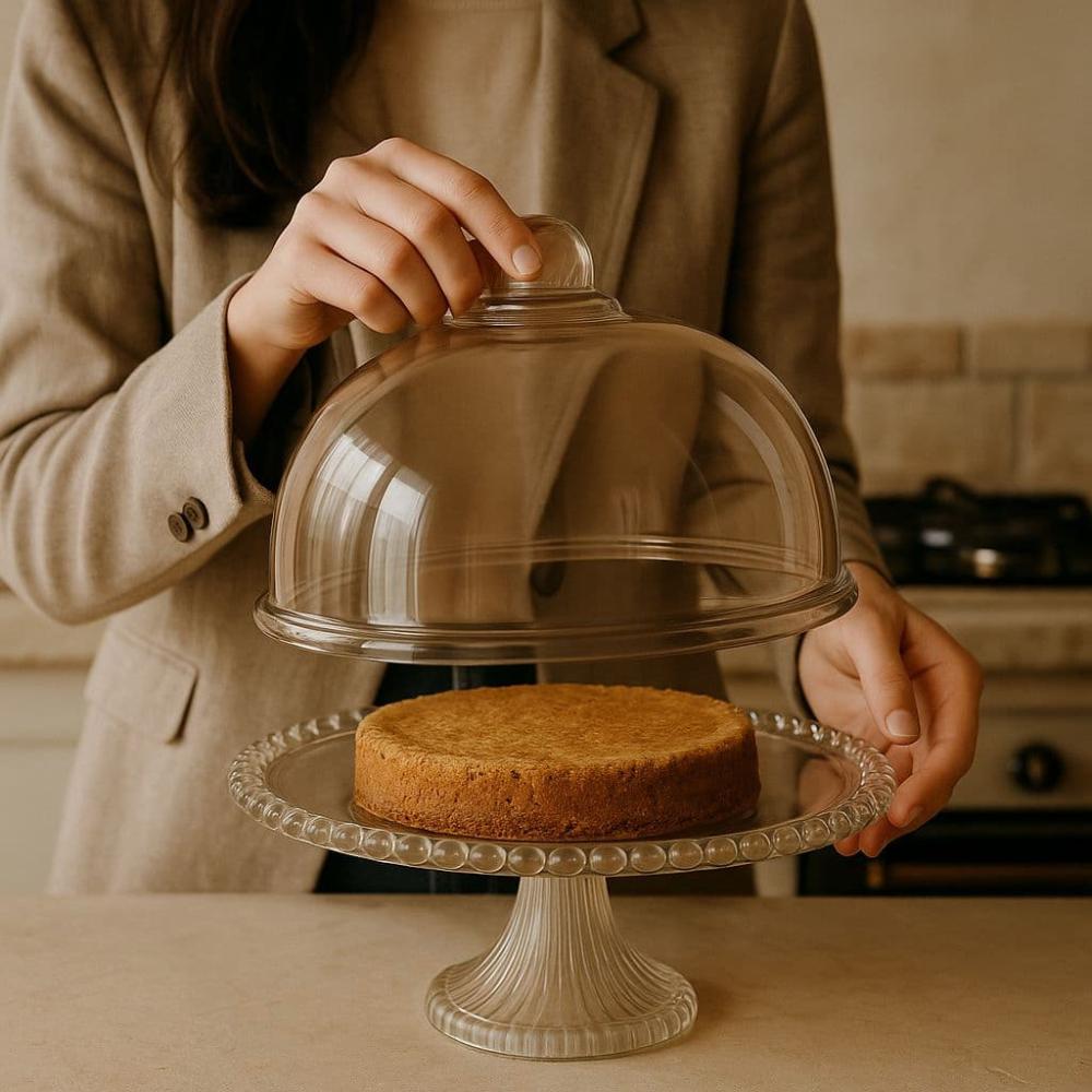 حامل كيك زجاجي مع غطاء فاخر - AL-10844