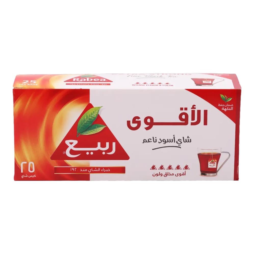 شاي أسود ناعم الأقوى من ربيع – 25 كيس × 2 جرام📌 المواصفات:العلامة التجارية: ربيعالنوع: شاي أسود ناعمالكمية: 25 كيسالوزن الصافي: 50 جرام (2 جرام لكل كي...