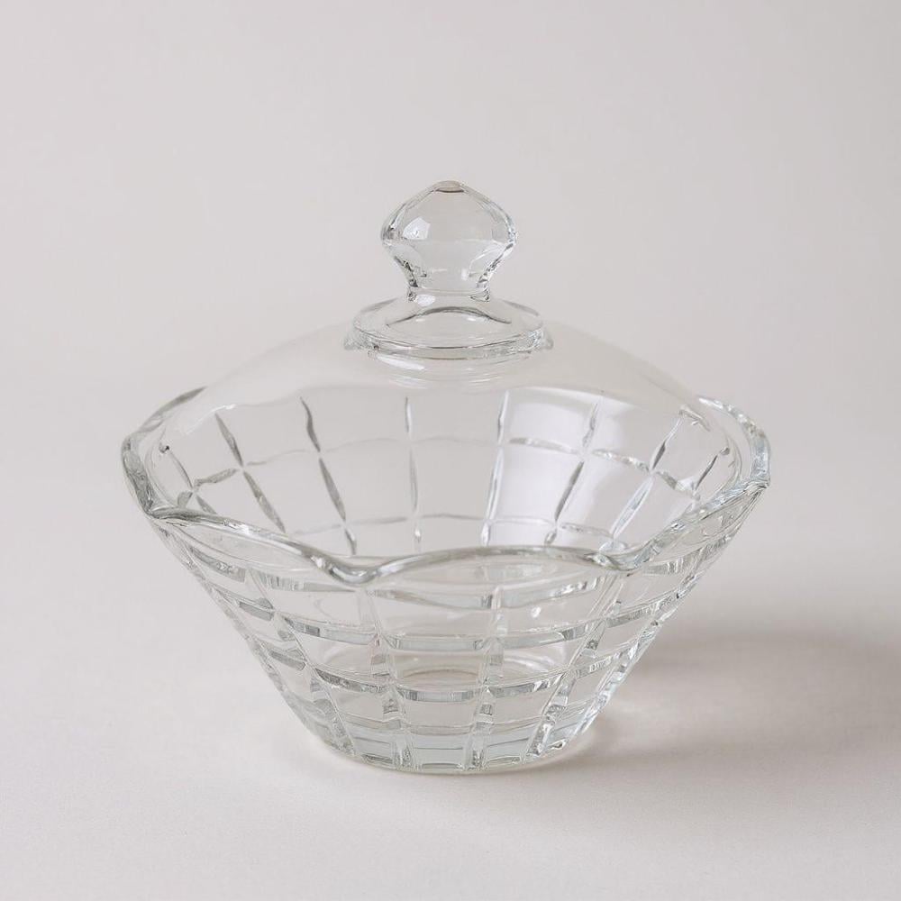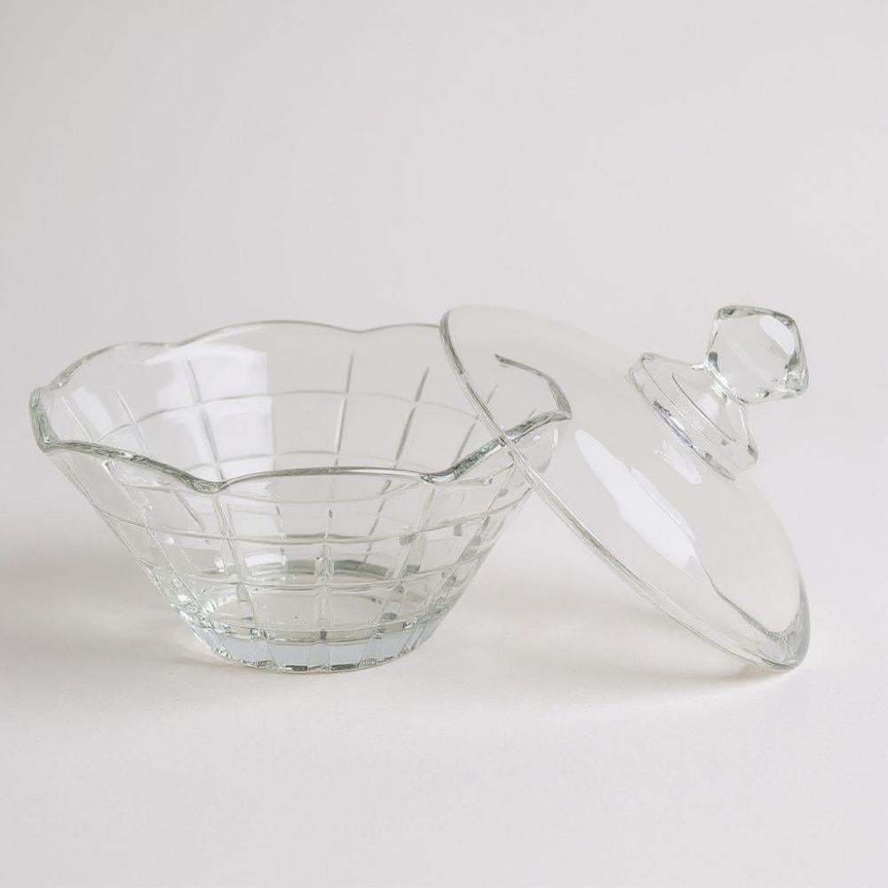صحن تقديم زجاجي مزخرف بغطاء شفاف – نقشة خطوط - AL-11392-4