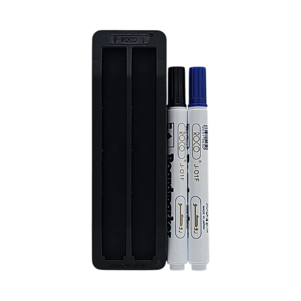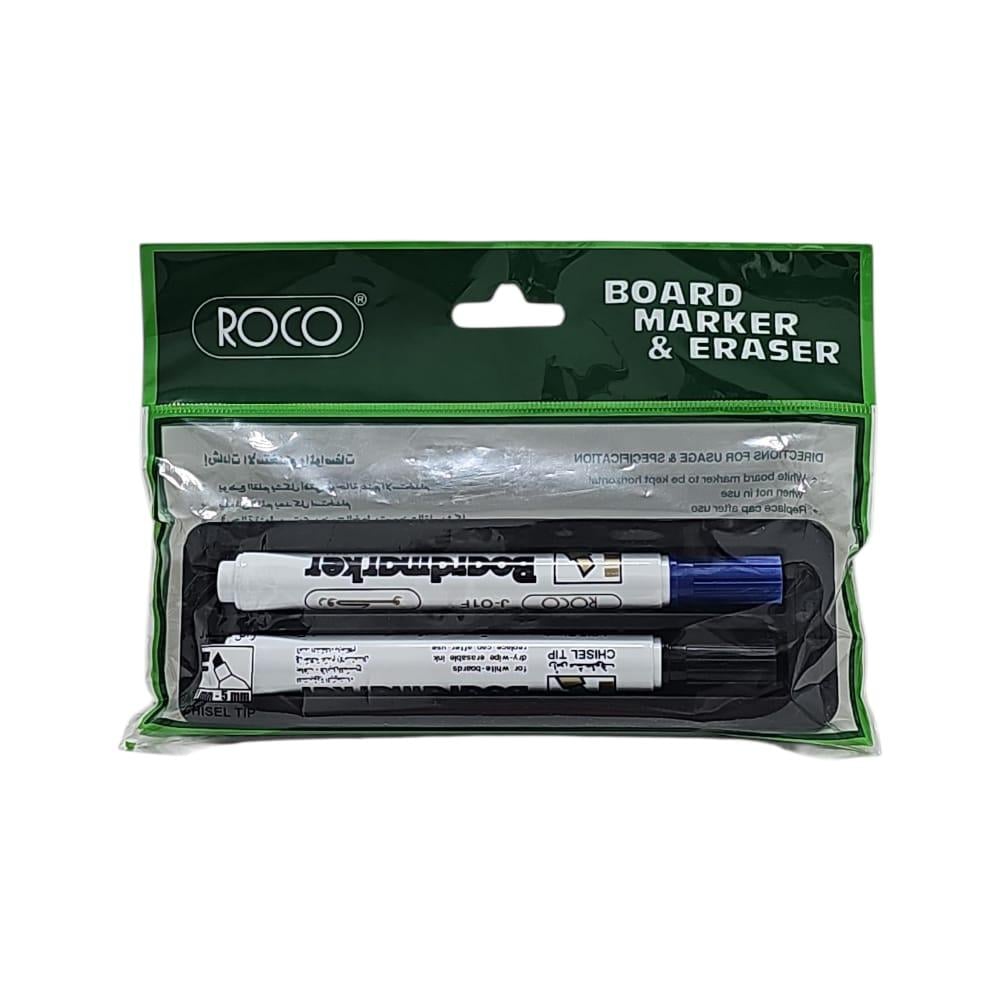 طقم روكو للسبورة – 2 قلم (أسود + أزرق) + ممسحة | RQ-29009