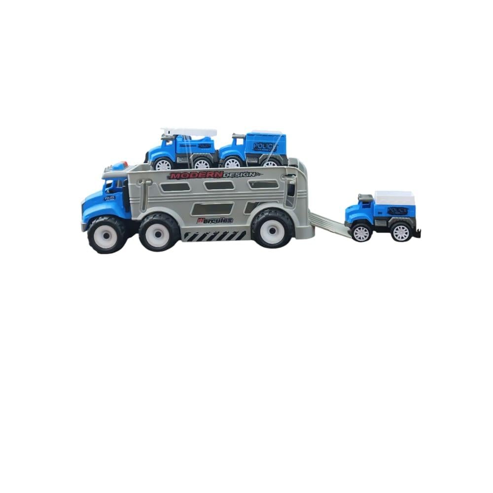 مجموعة شاحنات سحب و3 سيارات شرطة إبداعية ضخمة، بلاستيك، رمادي/أزرق
