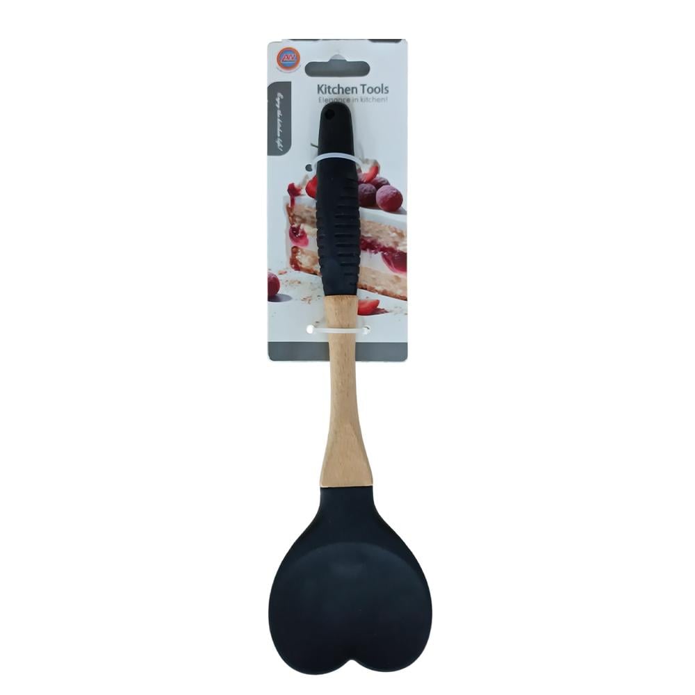 ملعقة سيليكون بمقبض خشبي بتصميم قلب - AL-8023-2