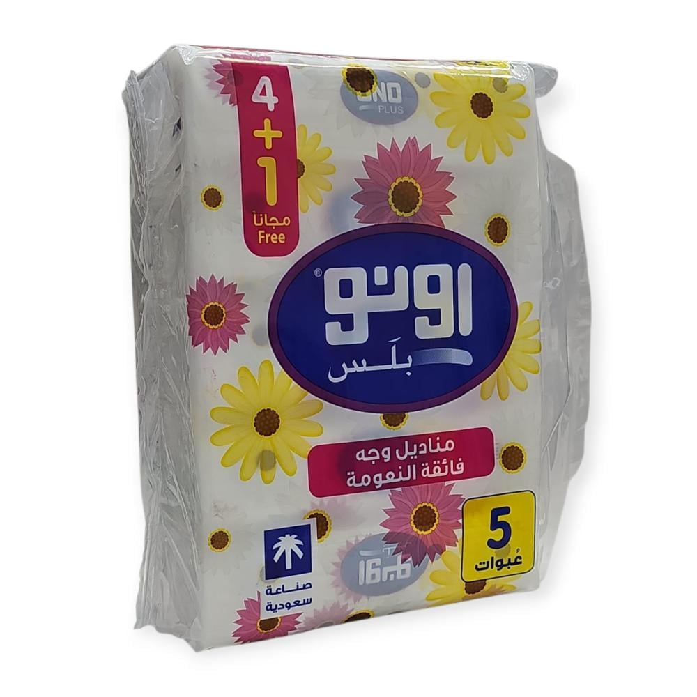 مناديل وجه ناعمة – من أونو – 5 عبوات × 160 منديل مفرد